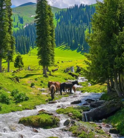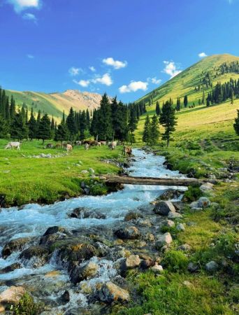 09:00-10:30早餐后乘車前往那拉提鎮(zhèn),這座小鎮(zhèn)坐落在山腳下,離山很近又很遠,遍地是牛羊的道理,在雪山的簇擁下,流水潺潺,處處都是美麗的風景;