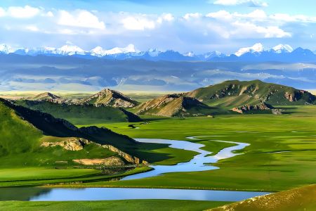 白沙山:-形成:由大大小小十余座山丘組成,相對高度多在100米以上,蜿蜒十幾公里。這里的沙子是河床積沙沉積形成,當(dāng)水位下降,沙子露出水面,晝夜不息的風(fēng)將沙子吹起,歷經(jīng)千萬年,積沙成山。-景觀特色:山體被白沙覆蓋,從遠(yuǎn)處望去,銀色的細(xì)沙潔白柔和,猶如嬰兒的肌膚,在遠(yuǎn)方的青山和近處綠草的映襯下,天地蒼茫