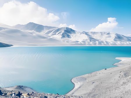 班迪爾藍(lán)湖,也被稱為下坂地水庫、坎兒洋龍池。地處帕米爾高原的塔什庫爾干縣班迪爾鄉(xiāng),海拔約3050米。水域面積約為3平方公里。水深:約為30米。班迪爾藍(lán)湖的湖水呈現(xiàn)出深邃的藍(lán)色,這是由于湖水中含有高濃度的礦物質(zhì)。湖泊周圍是昆侖山脈的裸露巖層,與湖泊的藍(lán)色形成了鮮明的對(duì)比,給人一種冰冷而深邃的美感。游客